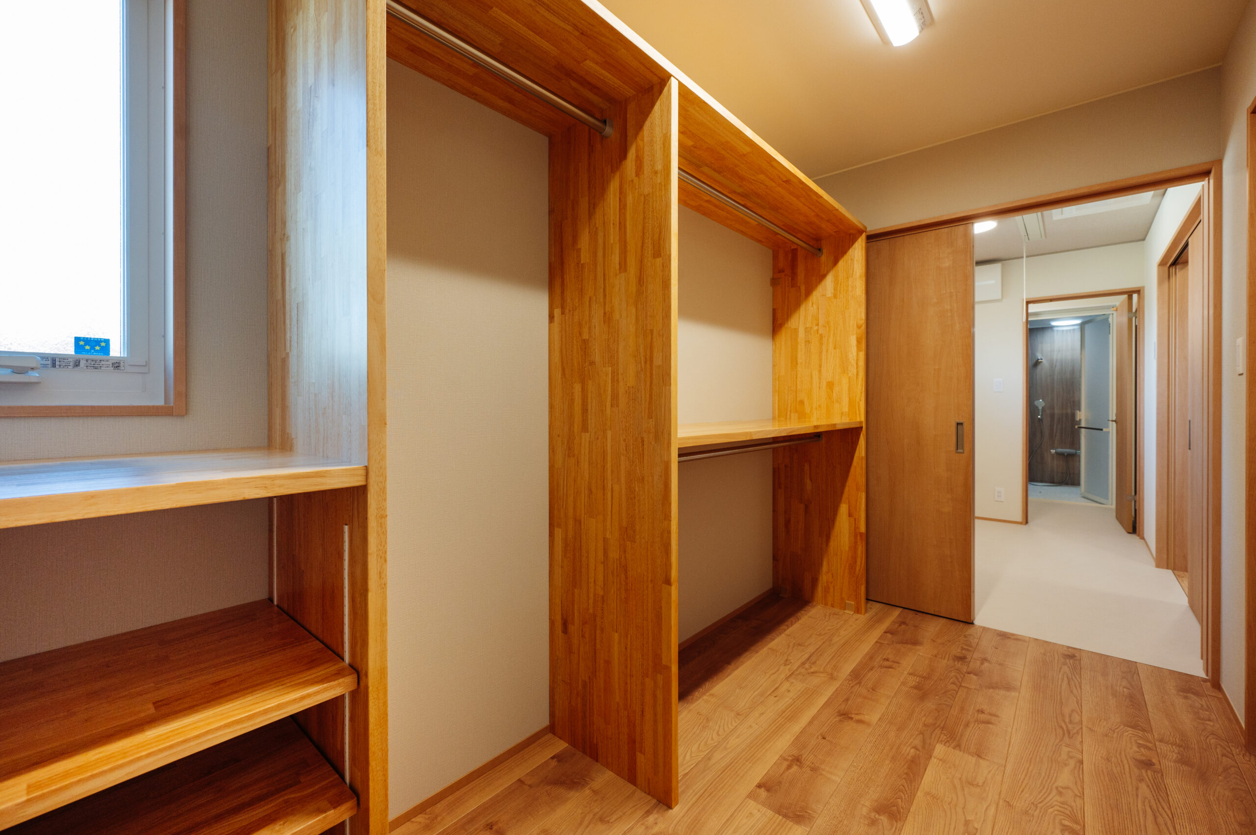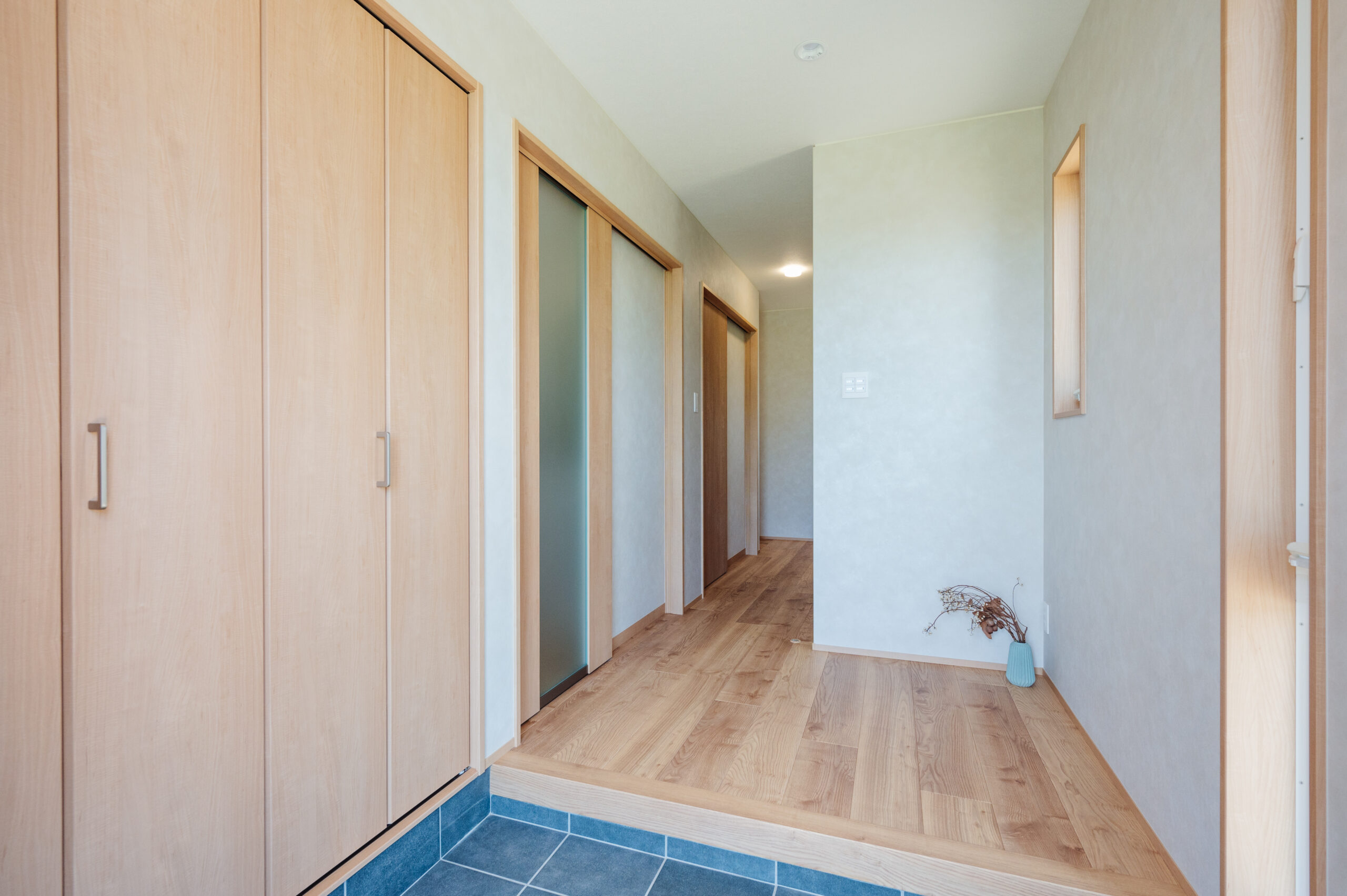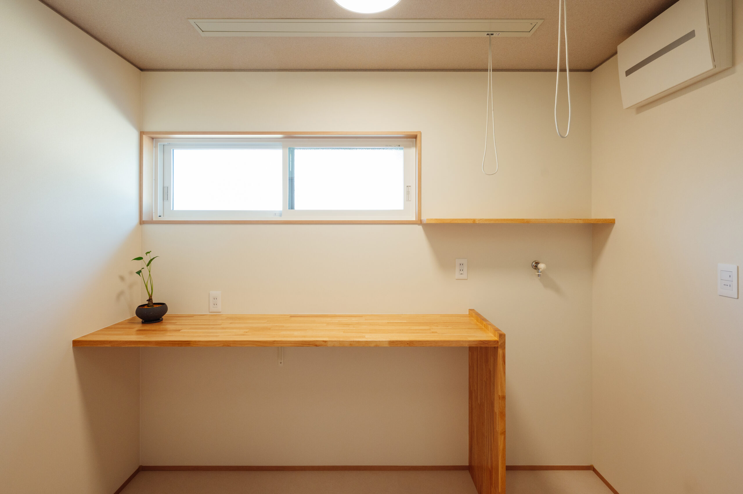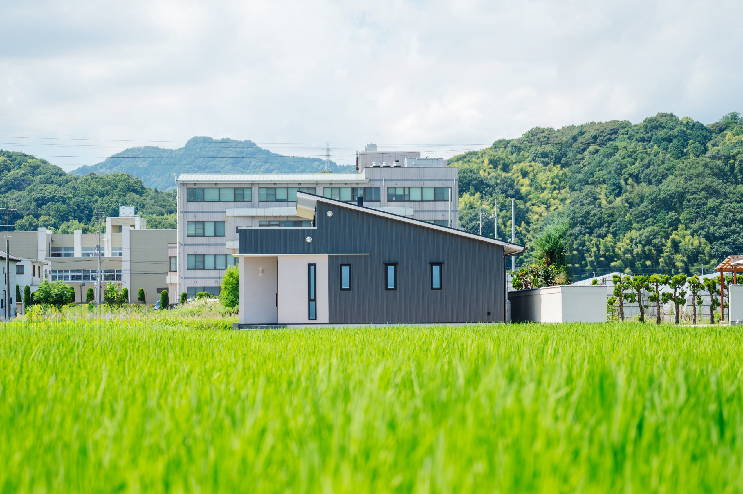 2024年10月29日 施工実績 光と開放感を楽しむ、斜め屋根の平屋住宅 この平家住宅は 斜め屋根デザインと大きな窓によって 自然光が豊富に差し込み、明るく開放的な空間を実現しました。 高い天井と白い壁・程よく見える木目が 温かみのある居心地の良い雰囲気を演出しています。