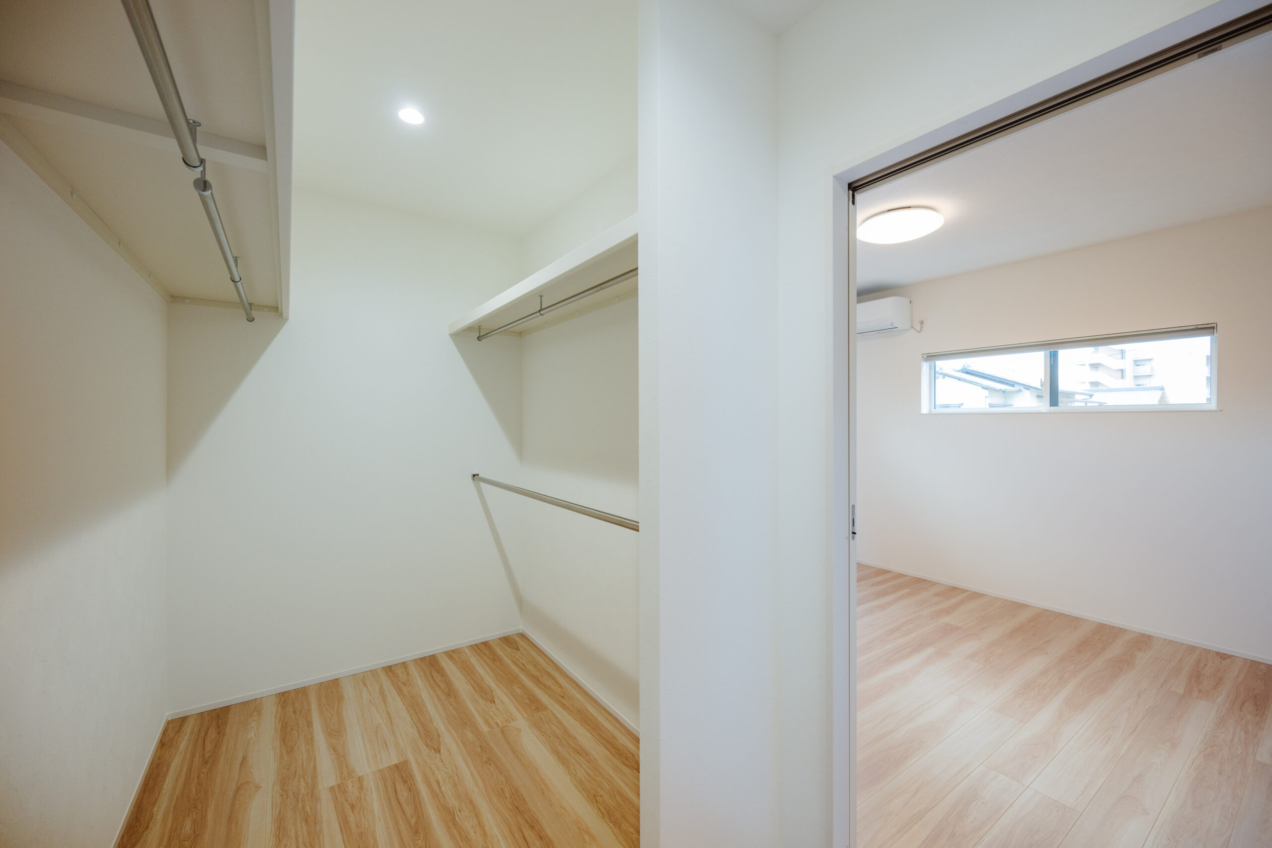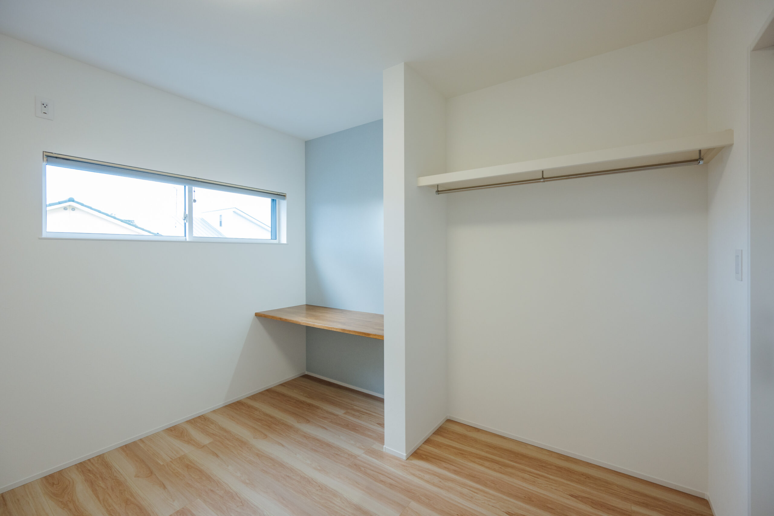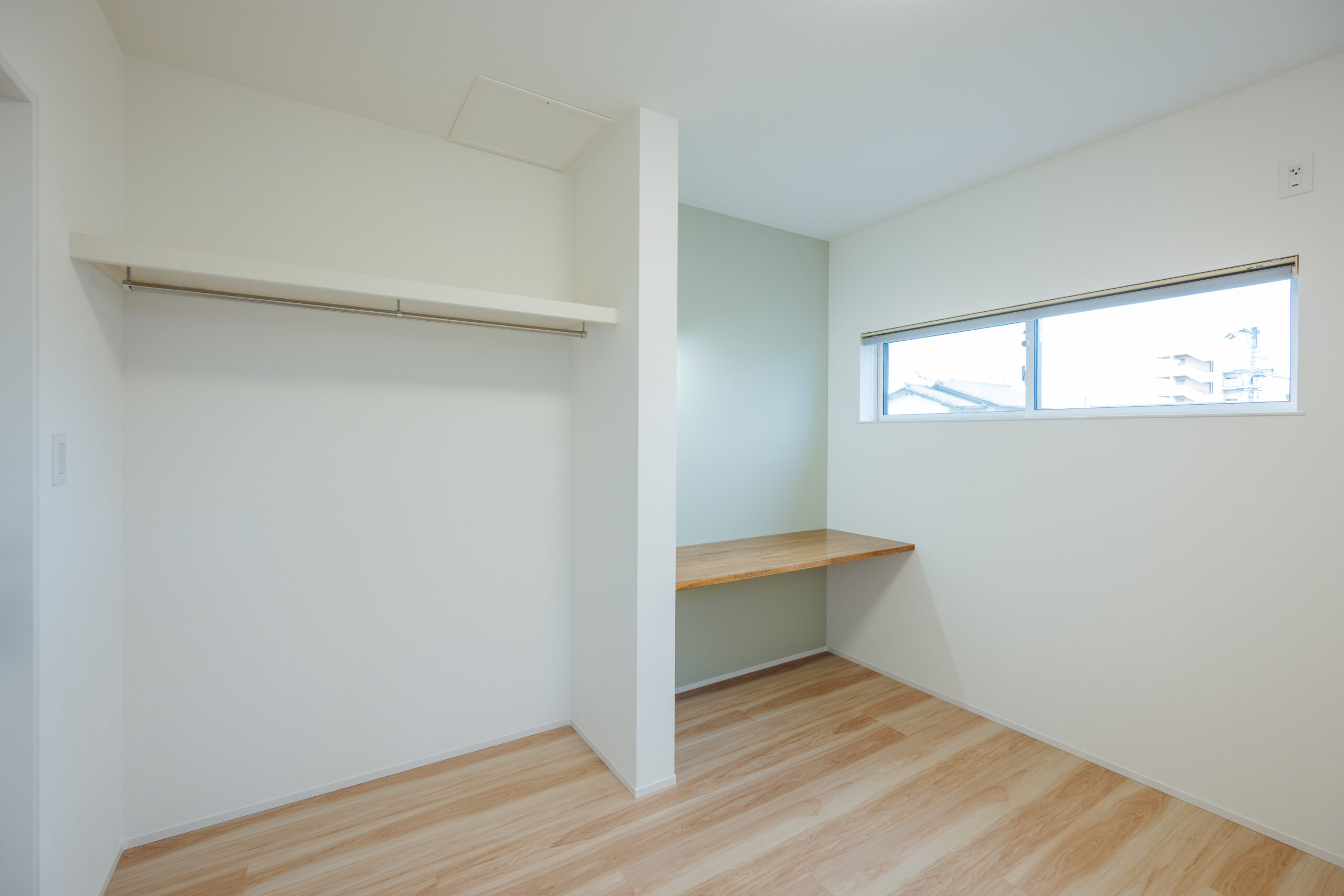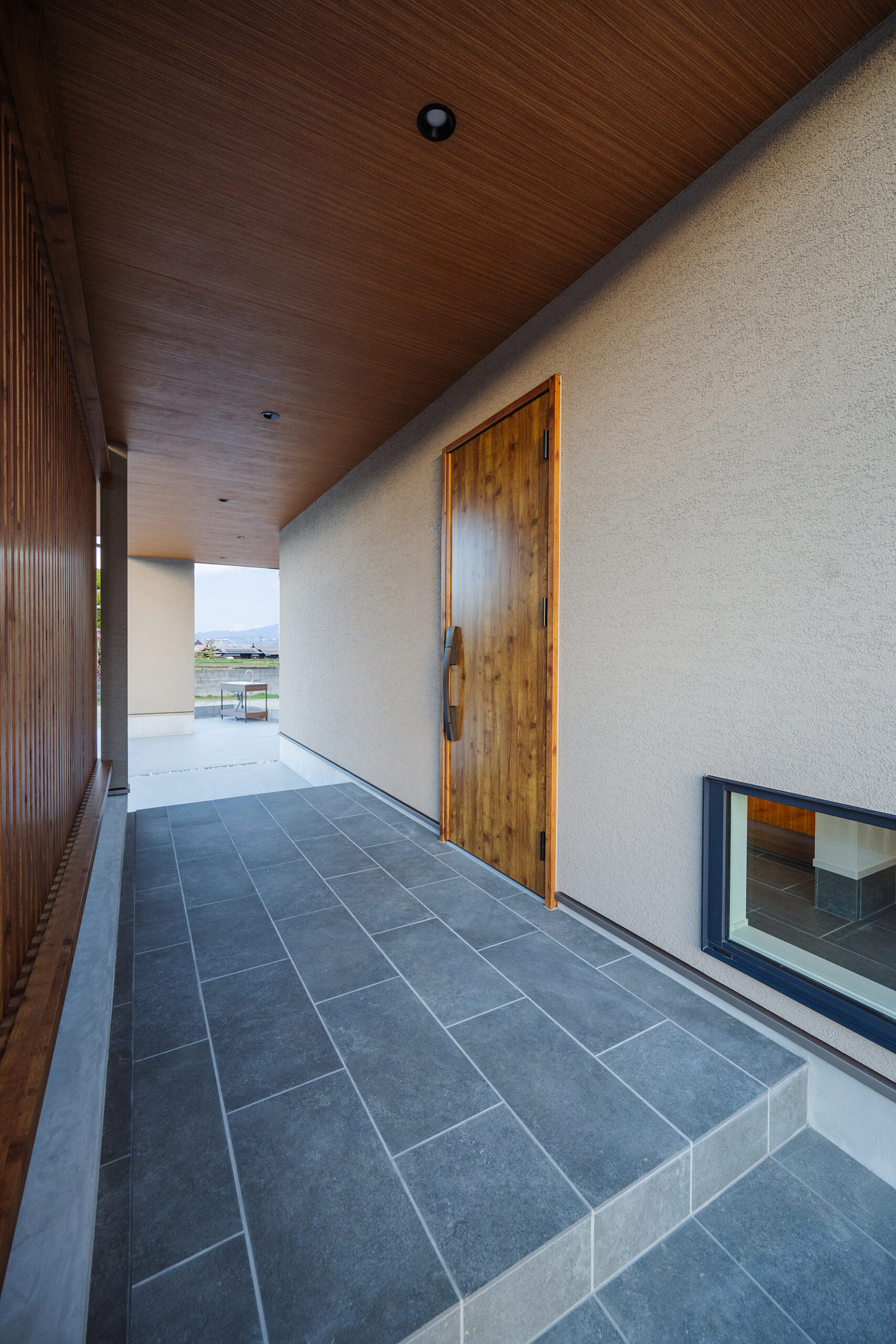 2025年2月20日 施工実績 こだわり抜いた和モダンの家 幼い頃からの想いが形になった 「こだわり抜いた家」 離れのような和室には間接照明を設け 雰囲気あふれる空間になりました。 客間として使っていただく時に、招いたお客様に気を使わず使っていただきたい。 というお施主様の想いにより、あえてリビングとは離した設計になりました。 廊下には、天井までの 大きなフィックス窓を設け 抜け感、透け感を意識し、 圧迫感のない廊下に仕上がりました。 その先には家族が集まる 開放感あふれるリビング。 勾配天井にしたことで、 さらに広く見せ開放的な空間になりました。 また、掃き出し窓を大きく設け、外のタイルデッキとリビングが一体感のある空間に なり、リビングのどこに居ても外で遊ぶ子供の様子が確認できるようにしました。